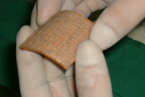 聚酰胺双绉纱,背面附有铝膜,为皮片扩展载体,移植支撑